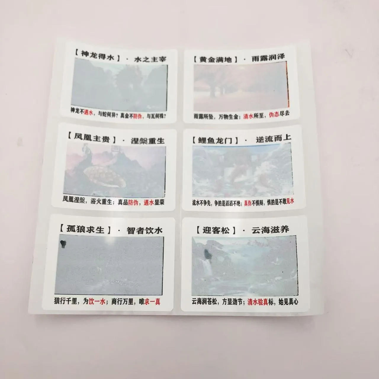 Et lille stænk vand er alt, der skal til for at aktivere etikettens reaktion. Letvægts og bærbar, etiketterne kan laves i forskellige former, såsom kort og øjeblikkelige fotostilprint.JOJO pakkeleverer tilpasningstjenester, vi kan udskrive tegneseriemønstre, mærkelogoer, salgsfremmende indhold og mere på etiketterne. De er ideelle til festlige lykønskningskort, pædagogisk legetøj til børn, brand marketing, anti-forfalskning og andre applikationer.