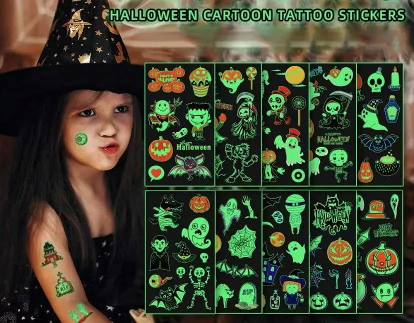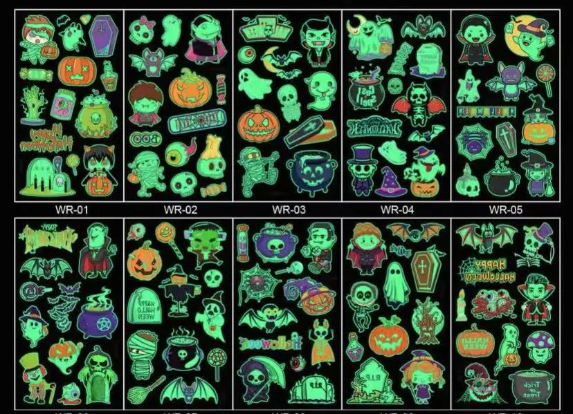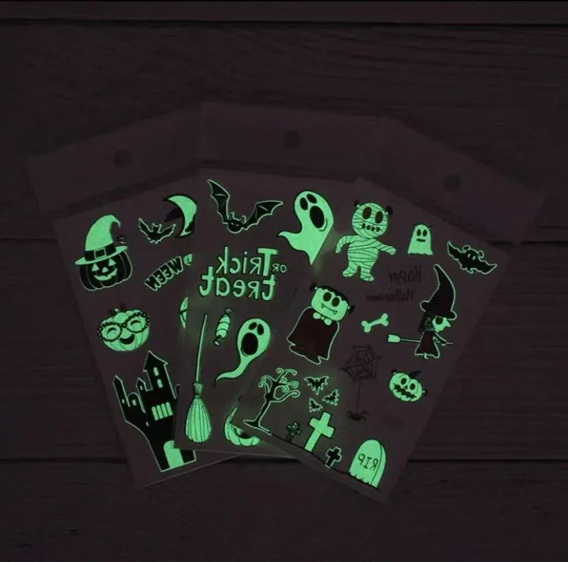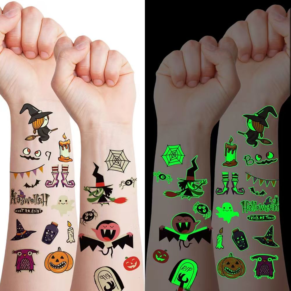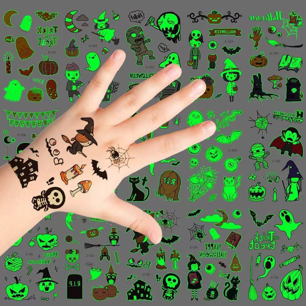 Halloween Night Glow Tattoo Stickers er et kreativt dekorativt emne, der er specielt designet til Halloween -fejringen. Det er lavet af miljøvenlig glød-i-mørk blækmateriale og kombinerer trendy tatoveringsmønsterdesign. I løbet af dagen kan det præsentere en naturlig farve eller sort tatoveringseffekt, og om natten kan det udsende køligt lysstofrør, så du let kan blive centrum for opmærksomheden på Halloween -fester, gadeparader og tema -begivenheder. Uanset om du er på jagt efter en uhyggelig og finurlig spøgelseslignende design eller foretrækker en mystisk og romantisk mørk atmosfære, kan du finde din yndlingsmulighed blandt de rige sortiment af mønstre. Du kan nyde det iøjnefaldende outfit med Halloween-tema uden at udholde smerter og varighed af tatoveringer.