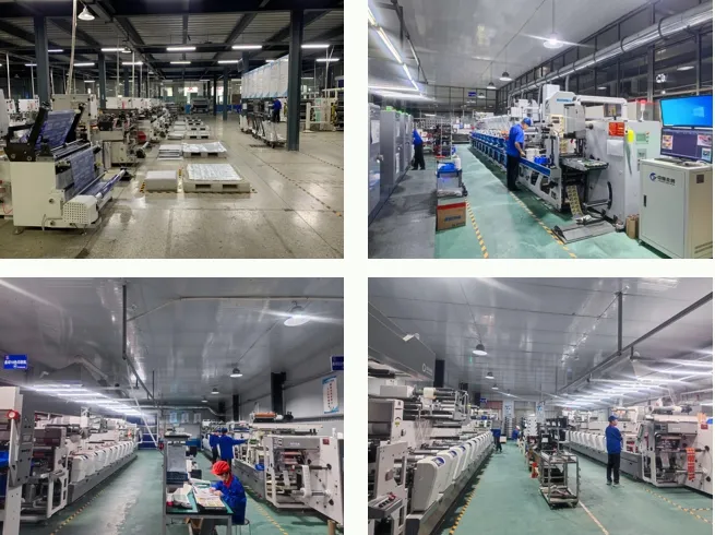 JoJo Pack Company har en fabrik, der dækker et areal på 18.000 kvadratmeter, med 7 fuldautomatiske produktionslinjer, udstyret med en række avancerede udstyr såsom CMYK -trykmaskiner, digitale trykningsmaskiner, spaltemaskiner, spole -maskiner, hotstemping -maskiner og papirskærere. Uanset om det er en stor virksomhed eller en lille og mellemstor virksomhed, kan vi imødekomme deres OEM- og ODM-behov.