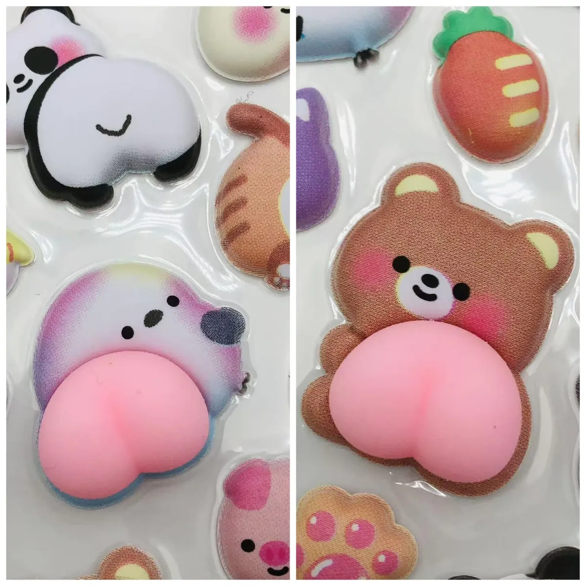 I modsætning til traditionelt stresslegetøj kommer disse numseformede afstressende klistermærker med ikke-rester klæbemiddel på bagsiden, så de kan klæbes og genbruges som almindelige klistermærker. De kan fastgøres til telefoner, computere, notesbøger, vandflasker, skriveborde eller enhver overflade, du ønsker at dekorere, og fungerer som både afstressende legetøj og et unikt udtryk for personlighed.
