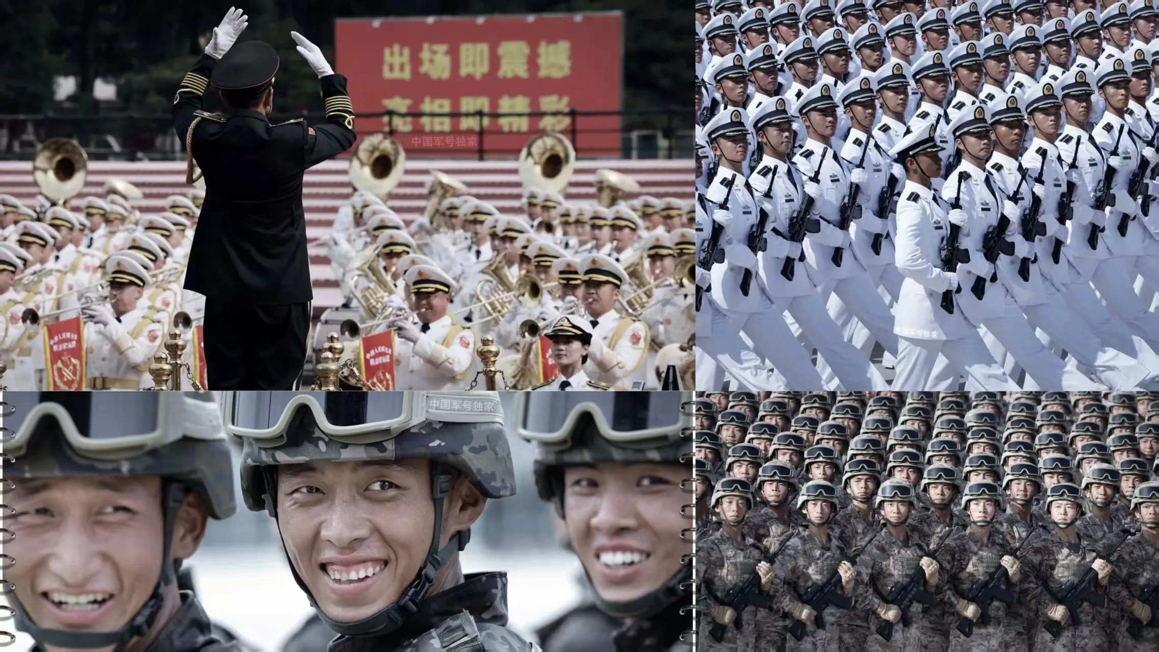 På Tiananmen -pladsen passerede 45 formationer og echelons i rækkefølge, og et fælles militærband bestående af mere end tusind officerer og soldater spillede den magtfulde lyde fra æraen.
