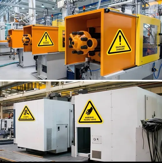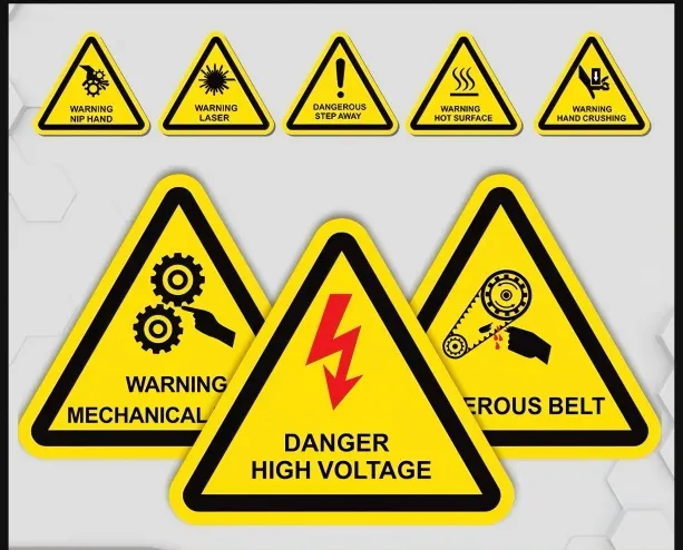 2. Advarselsmærkater på arbejdspladsen:Opsat på fabriksværksteder, byggepladser, laboratorier mv., advare om farer i specifikke arbejdsmiljøer, såsom "Mekanisk drift, vær opmærksom på sikkerhed"-mærkater på værksteder, og "Højdearbejde, brug sikkerhedshjelm"-mærkater på byggepladser.
